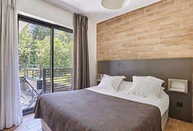 Apartament 2-pokojowy 4/5 osobowy – pow. ok. 36m2. Pokój dzienny z rozkładanym łóżkiem gigogne i rozkładanym fotelem dla jednej osoby. Pokój z podwójnym łóżkiem. Ekspozycja południowa. Większość apartamentów z balkonem. Apartament może być dwupoziomowy.