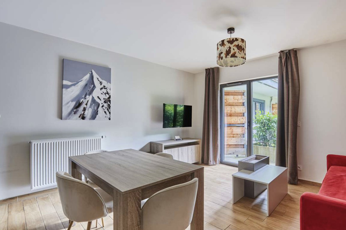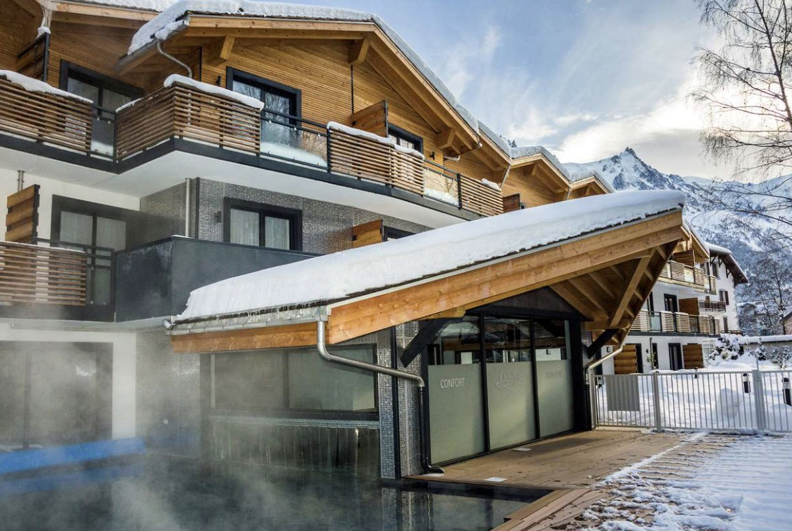 Rezydencja położona w sosnowym lesie w miejscowości Les Houches na wysokości 1100 M npm jest doskonałą bazą wypadową do odwiedzenia kurortu Chamonix i całego regionu w obrębie Mont Blanc. Do najbliższych wycągów narciarskich w Les Houches ok. 400 m (wyciąg Prarion). Słynna kolejka Aguille du Midi w samym Chamonix oddalona jest około 9 km. W pakiecie rezydencji goście otrzymują zapierające dech w piersiach widoki na najwyższy, biały wierzchołek Europy. Rezydencja bardzo komfortowa, pozwala gościom na pełny relaks po nartach gdzie można korzystać z dużego basenu z podgrzewaną wodą, jacuzzi, sauny, łaźni parowej i strefy fitness. Apartamenty są urządzone bardzo nowocześnie ale w alpejskim stylu a aatynowa biel we wnętrzach zachęca zarówno do odpoczynku jak i do spotkań w gronie rodziny lub narciarskich przyjaciół.
