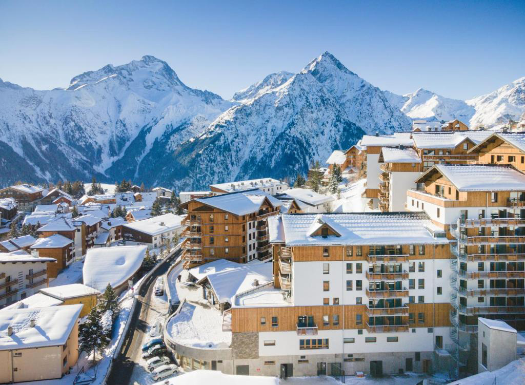 Rezydencja Au Ceur des Ours ***+ - Rezydencjapołożona w Les 2 Alpes na wysokości 1650 m n.p.m w odległości około 1 km do ścisłego centrum kurortu. Rezydencja znajduje się w pobliżu wyciągu krzesełkowego 'Valle Blanche' (przejście przez ulicę) oraz przy samej trasie Champane-LaCote prowadzącej do wyciągu krzesełkowego "Petite Aquille" po stronie lodowca. W bezpośrednim sąsiedztwie znajdują się sklepy, markety, butki sportowe oraz z pamiątkami. Obok znajduje się także centrum informacji turystycznej oraz szkółka narciarska ESF Point I. Rezydencja oferuje kilkanaście apartamentów rozmieszczonych w dwóch stylowych budynkach, wykończonych drewnem i kamieniem podkreślając jej alpejski charakter. Apartamenty mogące pomieścić od 2 do 8 osób ulokowane są na 3 piętrach budynku. Przy rezydencji znajduje się także przystanek skibusa, który dodatkowo ułatwia poruszanie się po stacji narciarskiej.